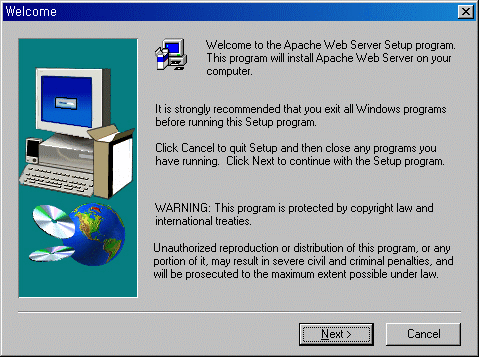 ´Ù¿î·Îµå ¹ÞÀº apache_1_3_12_win32.exe¸¦ ´õºí Ŭ¸¯ÇÏ¿©, ¼³Ä¡¸¦ ½ÃÀÛÇÏÀÚ.