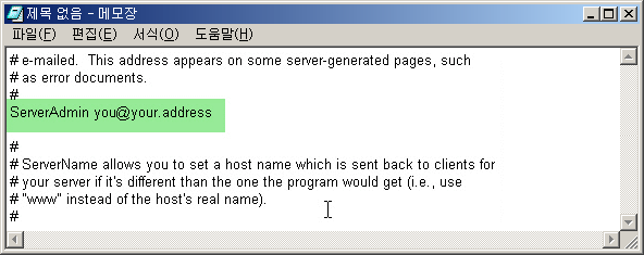 ÆÄÀÏ¿¡¼ [ã±â]·Î ServerAdmin you@your.address ºÎºÐÀ» ã¾Æ¼ ¼¹ö °ü¸®ÀÚ,